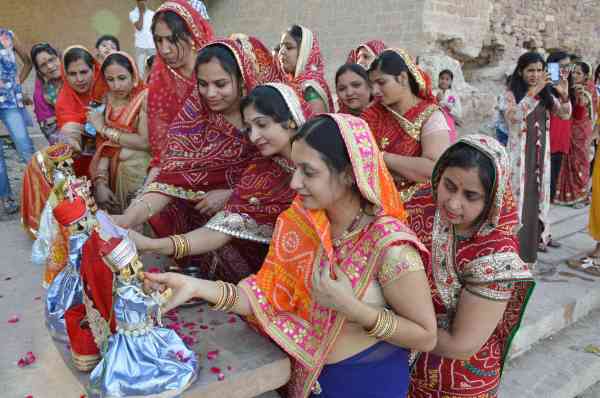 गिनाणी तालाब पर पूजा करती खाई गली की महिलाएं।
