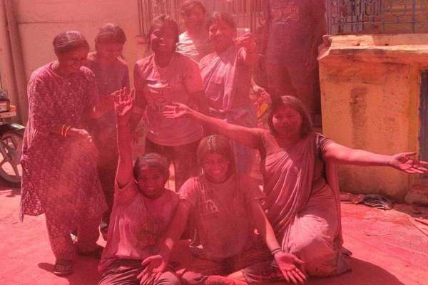 नागौर में एक -दूसरे पर रंग उड़ेलती युवतियां और महिलाएं।