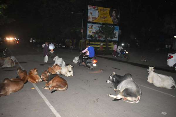 रात में चक्कर रोड से सतरस्ते तक 250 से ज्यादा मवेशी बीच सड़क पर बैठे मिले