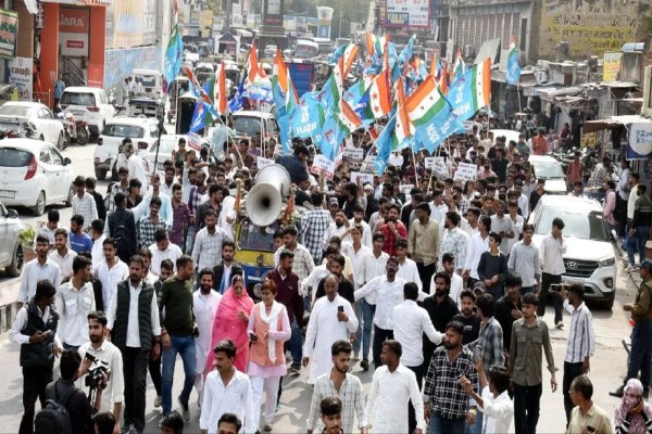 एनएसयूआई ने 11 सूत्रीय मांगों को लेकर आक्रोश रैली