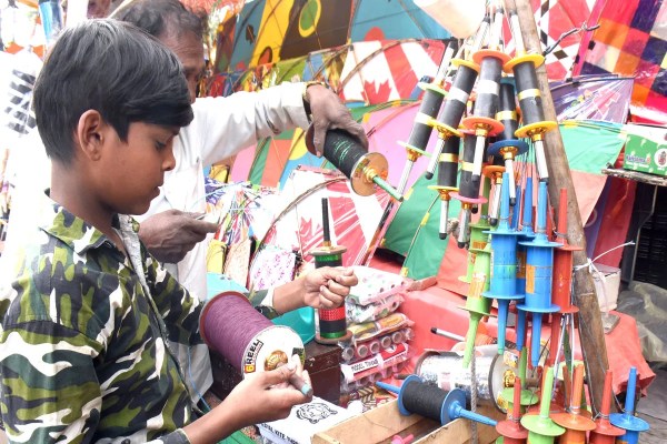 साथ ही पतंग के रूप में आत्म निर्भर भारत छुएगा आसमान । 14 जनवरी को हर वर्ष मकर संक्रांति पर्व मनाया जाता है। इस दिन पतंग प्रतियोगिता और तिल गुड़ के लड्डू खा कर त्यौहार मनाते है । शहर में पतंग की जगह जगह दुकानें सज गई है । फोटो सुभाष ठाकुर