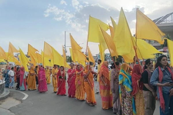 राधा दामोदर मंदिर से भव्य निशान पदयात्रा निकाली गई, जो शहर के प्रमुख मार्गों से होती हुई श्री कल्याण धाम पहुंची।