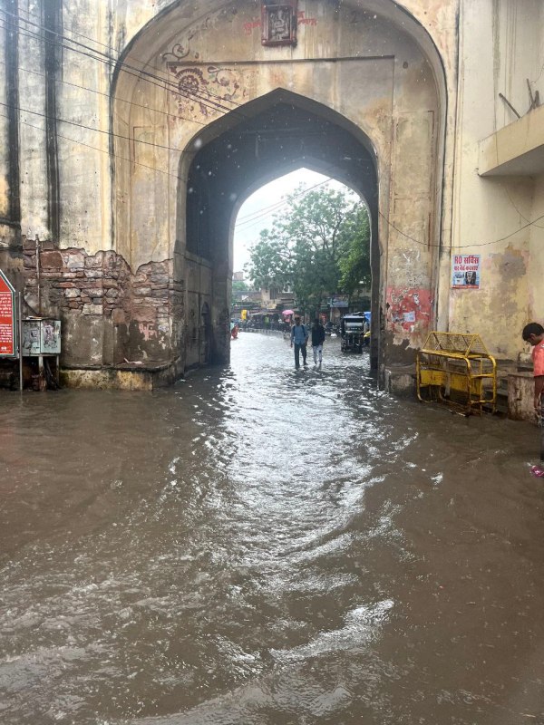 सांगानेर िस्थत मालपुरा गेट पर भरा पानी।
