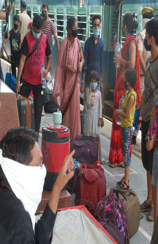 पाली। केंद्रीय मंत्री गजेंद्र सिंह शेखावत के प्रयासों के बाद रेल मंत्री पीयूष गोयल द्वारा प्रवासी यात्रियों को लेकर मुंबई से एक स्पेशल ट्रेन आज सुबह पाली पहुंची ।महाराष्ट में कोरोना का प्रभाव ज्यादा होने से भी स्थानीय लोगो में ड र सा बना रहा।इस स्पेशल यात्री ट्रेन में 1500 यात्रियों को मुंबई में ही स्कैनिंग करके बैठा गया था। पाली रेलवे स्टेशन पर पहुंचने के बाद विधायक ज्ञानचंद पार्क पूर्व सभापति महेंद्र बोहरा के साथ ही भाजपा के कई पदाधिकारी और पार्षद गण ने इन सभी यात्रियों को सेनीटाइज करने और नाश्ता कराने में सहयोग किया वहीं जिला प्रशासन ने सभी यात्रियों की जांच कर उन्हें 14 दिन तक होम क्वॉरेंटाइन होने का कहा। इस ट्रेन में पाली,फालना,बाली सुमेरपुर और रानी के यात्री आये।इन सभी यात्रियों के लिए रोडवेज ने 25 बसे का इंतजाम किया।जिला प्रशासन कि और से अतिरिक्त जिला कलेक्टर वीरेंद्र चौधरी और अन्य अधिकारी मौजूद रहे वहीं पुलिस विभाग से और चिकित्सा विभाग की ओर से भी चिकित्सा कर्मी रेलवे स्टेशन पर मौजूद रहे।