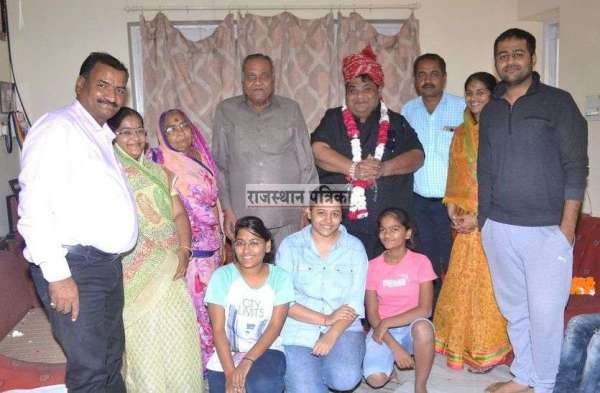 एक परिवार के सदस्यों के साथ मुस्कुराते आजाद।