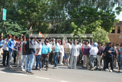 पाली। जिला मुख्यालय पर विरोध प्रदर्शन करते कांग्रेसजन।