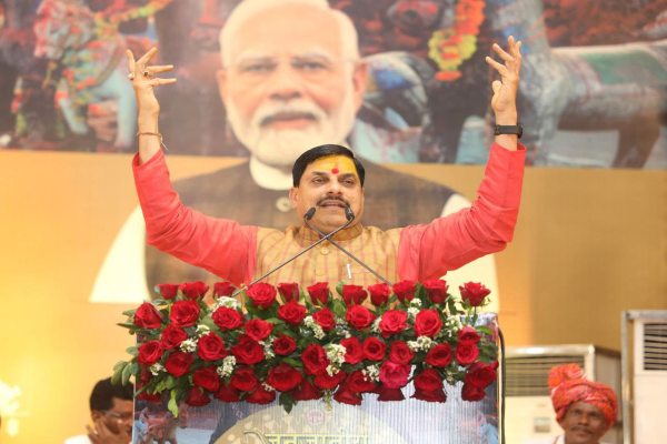 सीएम हाउस में जनजातीय सम्मेलन को संबोधित करते हुए मुख्यमंत्री मोहन यादव।