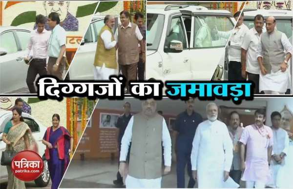 गृहमंत्री राजनाथ सिंह सहित कई बड़े नेता बीजेपी की कार्यकारिणी की बैठक में आते नजर आएं।