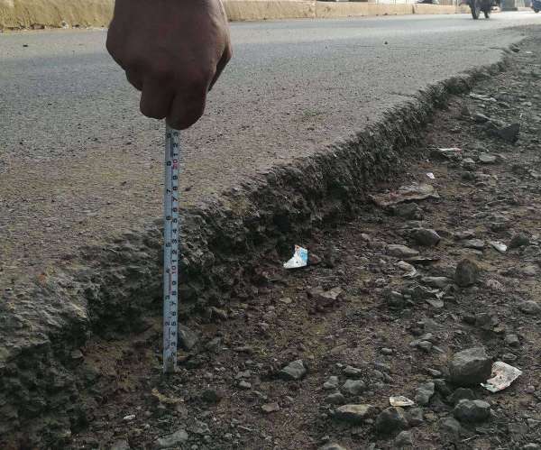 राष्ट्रीय राजमार्ग पर कई जगहों पर करीब आधी सडक़ ही टूटी हुई है। लम्बी सडक़ करीब 4-5 इंच गहराई तक टूटी हुई है। जहां उतरने पर हादसा हो सकता है। बावजूद इसके किसी का इस पर ध्यान नहीं है।