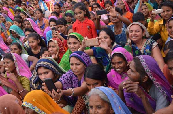 महिलाओं में भी फोटो लेने का रहा क्रेज... प्रतापगढ़ के निकट धमौत्तर में चुनावी सभा में मुख्यमंत्री वसुंधरा राजे का फोटो खींचती महिलाएं।