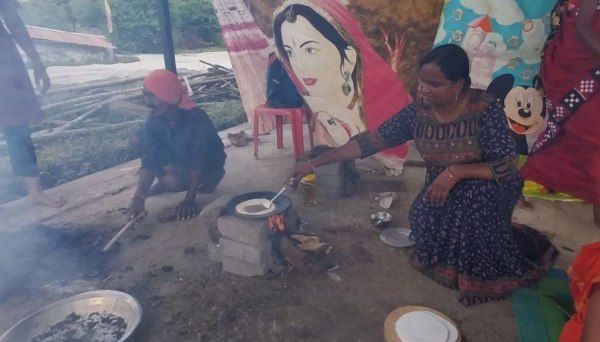 रायपुर के गोकुल नगर गौठान में महिलाओं द्वारा रात के बचे खाना से अंगाकर रोटी बनाकर उसे देशी पिज़्ज़ा बना रही।
