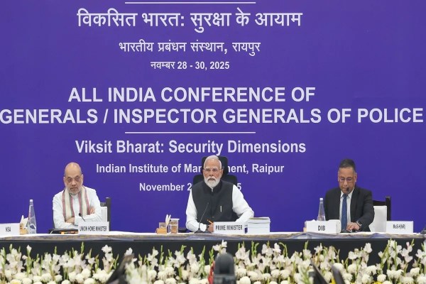 प्रधानमंत्री नरेंद्र मोदी की अध्यक्षता में छत्तीसगढ़ की राजधानी रायपुर में भारतीय प्रबंधन संस्थान (आईआईएम) में आयोजित डीजीपी/आईजीपी के 60वें अखिल भारतीय सम्मेलन (DGP/IGP Conference) का 30 नवंबर को समापन हुआ। तीन दिवसीय इस सम्मेलन का विषय विकसित भारत: सुरक्षा आयाम (Viksit Bharat: Security Dimensions) था। सम्मेलन में राष्ट्रीय सुरक्षा प्राथमिकताओं पर विस्तृत विचार-विमर्श हुआ, जिसमें विजन 2047 पुलिस व्यवस्था रोडमैप, आतंकवाद निरोधक रुझान, महिला सुरक्षा, भगोड़ों का पता लगाना और फोरेंसिक सुधार शामिल थे।