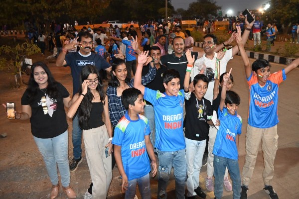 Raipur@patrika.com. दर्शक इंडिया की ब्लू जर्सी के साथ हाथों में तिरंगा झंड़ा थामे हुए थे।