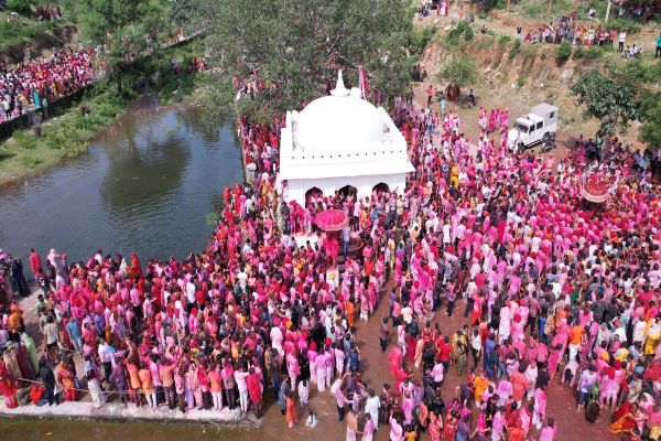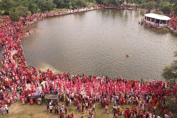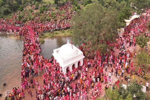 चारभुजा में ठाकुरजी की शोभायात्रा कई टन गुलाल उड़ाते छोगाला छैल के जयकारे लगाते हजारों श्रद्धालु प्रभु के बाल स्वरूप के सरोवर स्नान के न सिर्फ साक्षी बने, बल्कि उन्हें स्नान करवाने को आतुर दिखाई दिए।