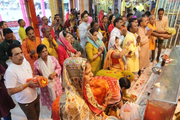 भोपाल@चैत्र नवरात्रि के पहले दिन आज सोमवारा भवानी मंदिर में श्रद्धालुओं की लगी भीड़। भवानी मंदिर में गर्भ गृह से शिखर तक लगभग 4 करोड़ से ऊपर का सोना लगा हुआ है इसे भोपाल का स्वर्ण मंदिर भी कहा जाता है। फोटो सुभाष ठाकुर