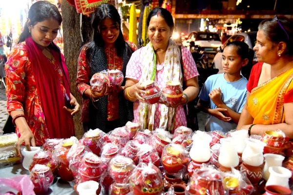 भोपाल में करवा चौथ पर्व के पूर्व न्यू मार्केट में महिलाओं ने जमकर खरीदारी की । उन्होंने मेंहदी ,चूड़ियां, करवा और पूजा सामग्री पसंद करने के लिए पहुंची महिलाएं । फोटो सुभाष ठाकुर