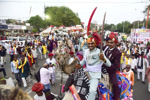 भोपाल@आज पाल समाज का सामूहिक विवाह सम्मेलन शाहपुरा में संपन्न हुआ।विशाल टैंक पर दुल्हनों को बैठाया गया और ऊंट से दोनों की बारात निकली । फोटो सुभाष ठाकुर ।