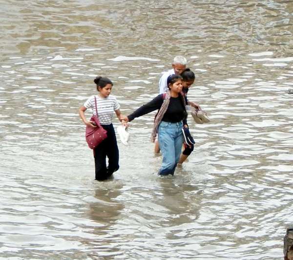 तेज बारिश के बाद नवलगढ़ रोड दिन भर पानी से लबालब रही।