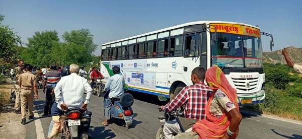 सिरोही. बाहरी घाटे में खाई में लटकी बस।