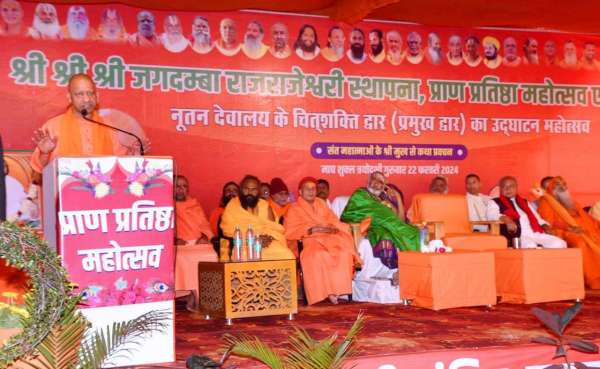 सीएम ने श्री श्री जगदंबा राज राजेश्वरी मंदिर की स्थापना- प्राण-प्रतिष्ठा महोत्सव व नूतन देवालय के चित्तशक्ति द्वार का उद्घाटन किया। मुख्यमंत्री योगी आदित्यनाथ ने यहां पूजन-अर्चना भी किया।
