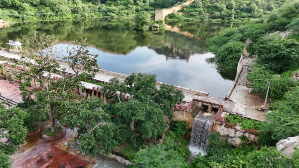 गुलाबीनगर के आमेर महल के पीछे िस्थत सागर जलाशय में इस बार हुई तेज बारिश से चादर चलने लगी है।