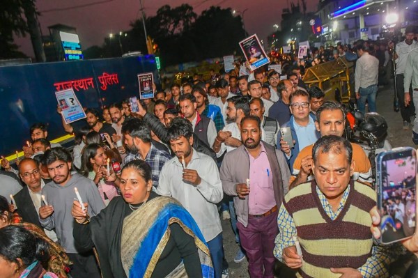 कुछ दिन पहले कब यह हादसा हुआ था तभी से लोगों में आक्रोश है। जिसके चलते शहीद स्मारक के चारों तरफ कैंडल मार्च निकला। फोटो अनुग्रह सोलोमन।