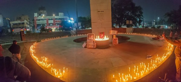 शहीद स्मारक के चारों तरफ घूम कर कैंडल मार्च किया गया। इसके बाद स्मारक के चारों तरफ कैंडल्स लगाई गई। फोटो अनुग्रह सोलोमन।