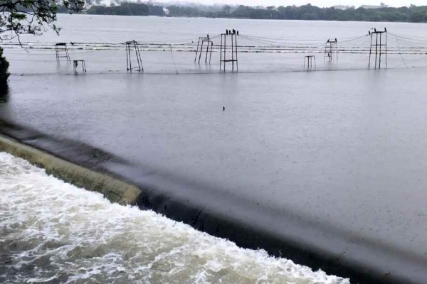 भोपाल में तेज बारिश के चलते कलियासोत डेम के दो गेट खोलकर टेस्टिंग की गई। फोटो सुभाष ठाकुर