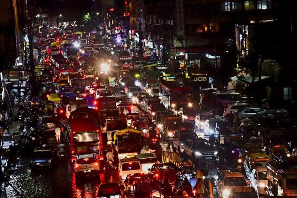 भोपाल में रात के समय हमीदिया रोड पर घंटो जाम लगा रहा। फोटो— अजय शर्मा