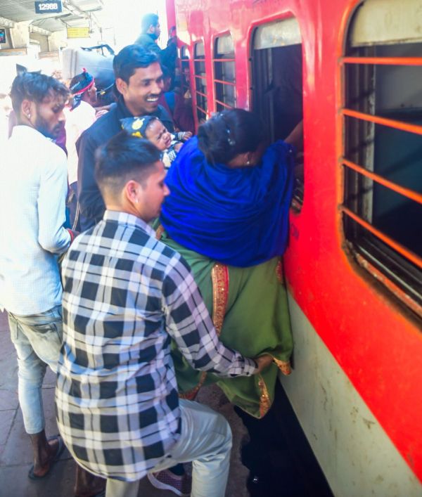 होली के लिए घर जाने वाले की भीड़, अभी से ट्रेनें फुल, देखें तस्वीरें