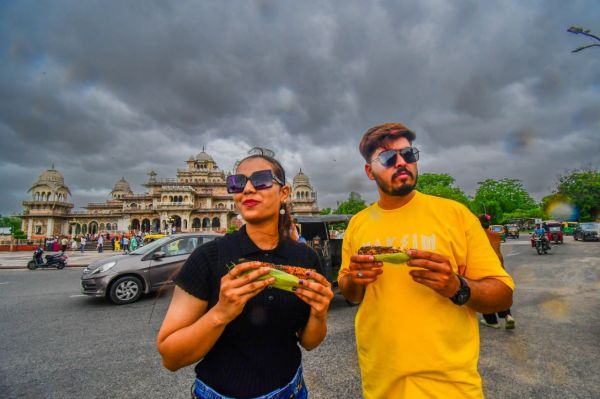 जयपुर में शनिवार को जबरदस्त बादल छाए। कई जगह भरी वर्षा भी हुई। वही अल्बर्ट हॉल के सामने पर्यटकों को भीड़ सेल्फी लेती और भुट्टा खाते दिखी। यहां पर तेज बारिश नहीं हुई हल्की फुल्की बारिश में भुट्टा खाने का आनंद सभी लेते दिखे। देखें तस्वीरें। सभी फोटोज अनुग्रह सोलोमन।