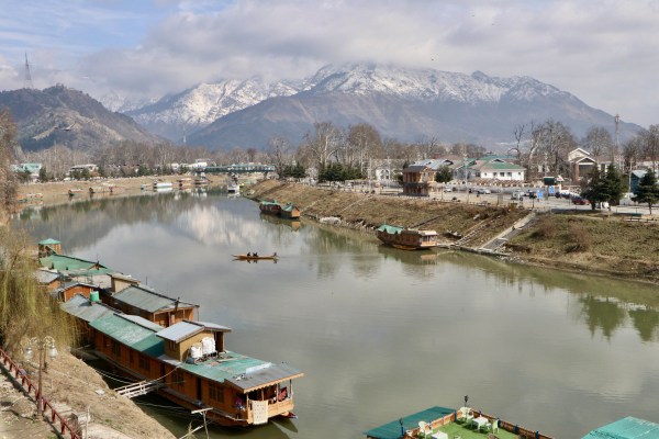 झेलम नदी के किनारे खाड़ी गई हाउसबोट। नदी का जलस्तर भी कम नजर आ रहा है।