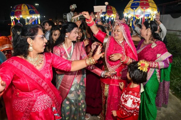 बारात में भी स्पेशल पोज। फोटो अनुग्रह सोलोमन।