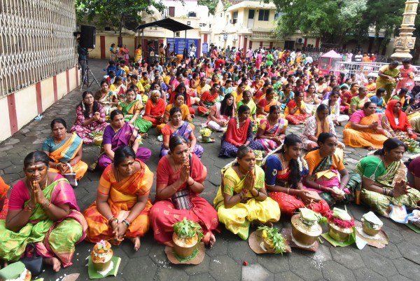 चेन्नई स्थित रॉयपेटा के वी एम स्ट्रीट स्थित नागथम्मन मंदिर में रविवार को हजारों महिला श्रद्धालु दूध के बर्तनों के साथ दुग्धाभिषेक का इंतजार करती हुई। दरअसल अगले सप्ताह के गुरुवार को आडी मास की शुरुआत के तहत यह पूजा की गई।