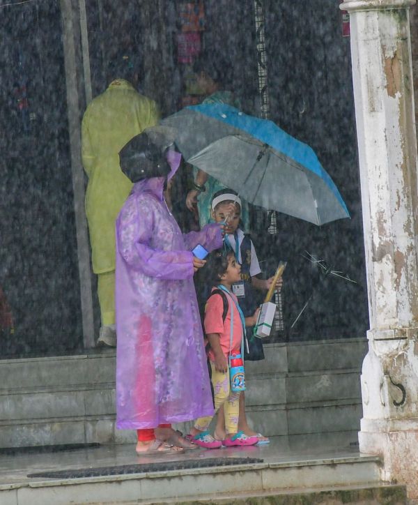 स्कूल की छुट्टी के टाइम बारिश, यानी बच्चों की मस्ती, देखें तस्वीरें