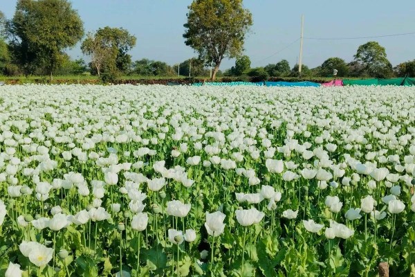 बारां के हरनावदाशाहजी में अफीम की फसल में इन दिनों सफेद फूल खिल रहे हैं जो न केवल ध्यानाकर्षण करते हैं। बल्कि अपनी भीनी सी विशेष गंध से वातावरण में अपनी उपस्थिति का अहसास करा रहे हैं। अफीम के खेत का मनभावन नजारा। फोटो— प्रमोद जैन