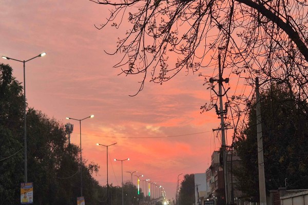 एक संध्या बेला में ऐसा लगा मानो आसमान के कैनवास पर विभिन्न रंगों से प्रकृति के ब्रश ने की आकर्षक चित्रकारी । बीकानेर में सूर्यास्त के दौरान ढ़लते सूरज के दौरान बादलों में सूरज की लालिमा छाई रही। । फोटो नौशाद अली।
