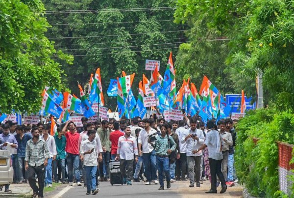 छात्र संघ चुनाव सरकार द्वारा बहाल हो इसको लेकर वीसी को ज्ञापन भी दिया। फोटो अनुग्रह सोलोमन।