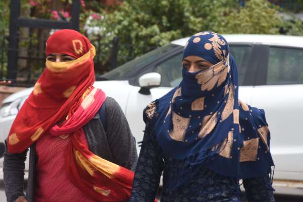 धूप से बचाव बीकानेर में तेज गर्मी पड़ने के कारण लोग घरों से बाहर निकलने से पहने धूप से बचने का उपाय साथ लेकर निकलते है शहर के कलेक्ट्रेट से मुंह पर कपड़ा बांधे निकलती युवतियां और एक पिता अपने बच्चे को गर्मी से बचाता फोटो नौशाद अली