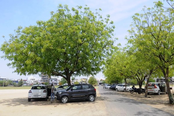 पाली में बढ़ती गर्मी और चिलचिलाती धूप से बचने के लिए लोग अपने चौपहिया वाहन छायादार पेड़ों के नीचे खड़े कर रहे हैं। पेड़ों के नीचे गाड़ियों की कतार नजर आई। फोटो : सुरेश हेमनानी