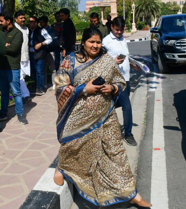 विधानसभा की कार्यवाही एक घंटे रोकने के बाद बाहर आती विधायक इंद्रा मीणा। फोटो अनुग्रह सोलोमन।