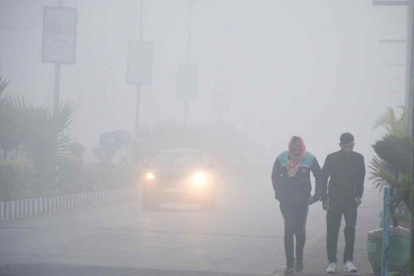 कोटा में सुबह के समय कोहरे छाए रहने से दृश्यता में आई कमी।