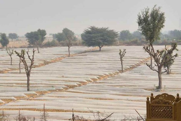 फसल को मौसम की मार से किया बचावठण्ड बढ़ने के साथ बीकानेर में किसानों की चिंता बढ़ने लगी है। ऐसे में किसानो ने फसलों को पॉलीथिन से ढक कर किया बचाव। फोटो नौशाद अली।