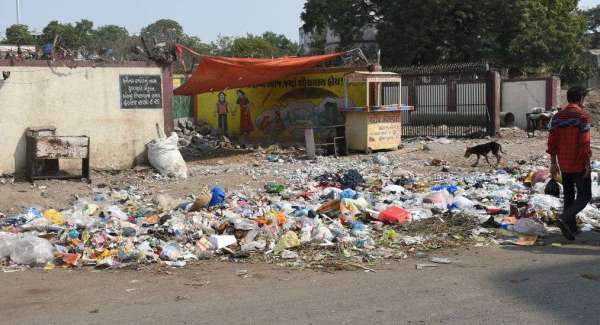 रांदेर गाम में सडक़ किनारे पड़ा कचरा।