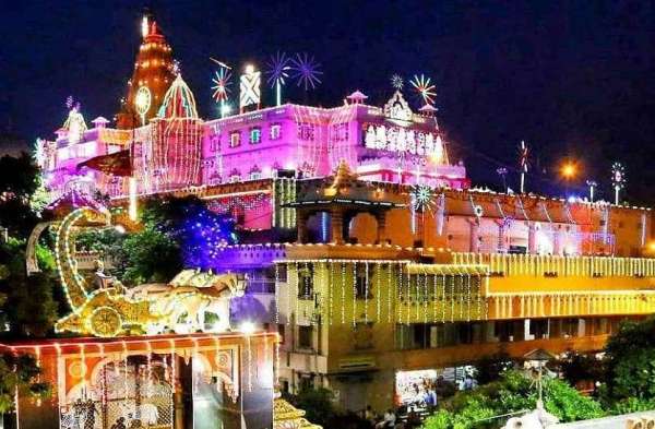 जयपुर में जन्माष्टमी उत्सव के तहत गोविंद देव जी मंदिर प्रांगण में की गई सजावट। इस दौरान रोशनी से जगमग गोविंद देव जी मंदिर । फोटो :- रघुवीर सिंह