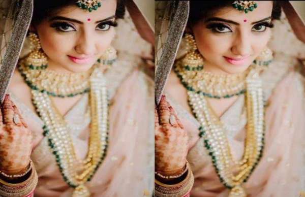 तस्वीरों में वह दुल्हन के गेटअप में काफी खूबसूरत नजर आ रही हैं। उन्होंने पिंक लहंगे के साथ एमराल्ड और कुंदन ज्वैलरी पहनी है