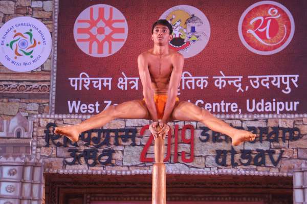 स्कूल कॉलेज जाने वाले छात्र-छात्राओं के इस दल ने मलखम्भ में अपनी दैहिक लोच का रोमांचकारी प्रदर्शन किया।