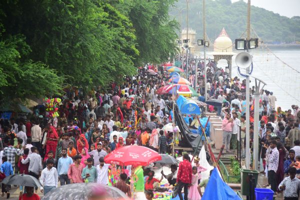 फतहसागर की पाल रिमझिम बारिश से मेलार्थियों में उत्साह रहा