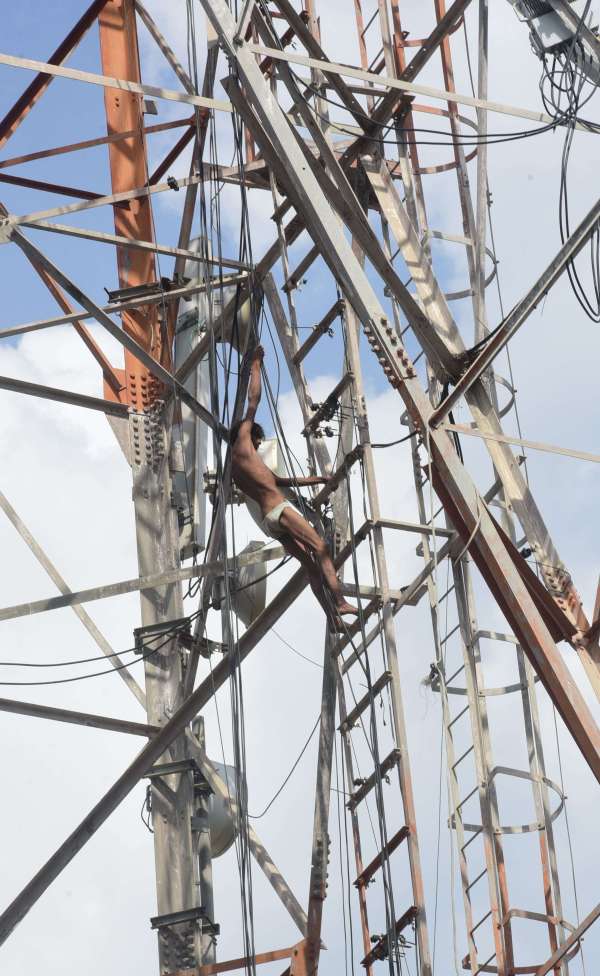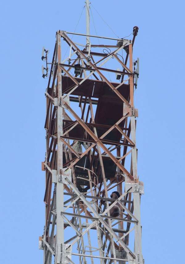 बीएसएनएल के टावर पर चढ़ा विक्षिप्त युवक नीचे उतरता हुआ