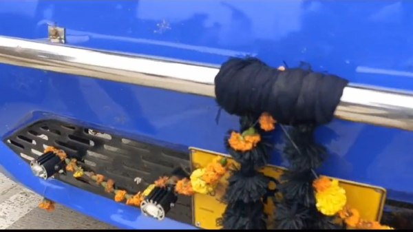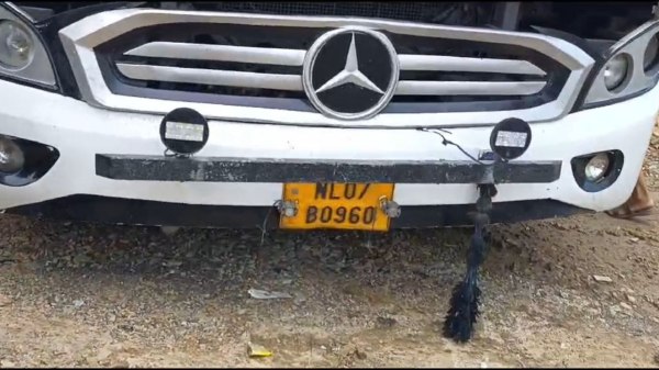 गाड़ी को नजर ना लगे, इसलिए काली चुटिया टांगी गई। होशियारी इतनी की नंबर प्लेट भी नहीं दिख रहा है। परिवहन मंत्री ने इसकी तरफ भी इशारा किया।